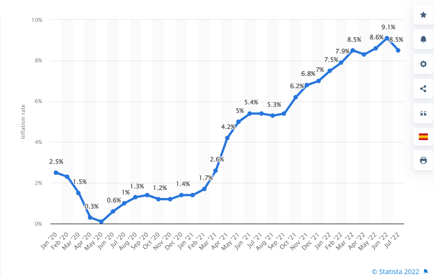 The graph above produced by Statista plots the 12-month inflation rate from January 2020 to July 2022. It clearly shows that by the time the Federal Reserve initiated its first interest rate hike the CPI or headline inflation had already reached 8.5%. More so, it underscores how long the Federal Reserve turned a blind eye to inflation spiraling out of control with consistent and consecutive upticks month after month.