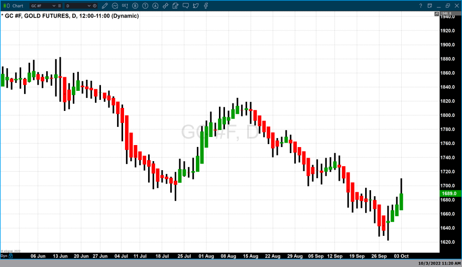 As of 5:28 PM, EDT gold futures basis most active December contract is currently up $36.60 or 2.19% and fixed at $1708.60.