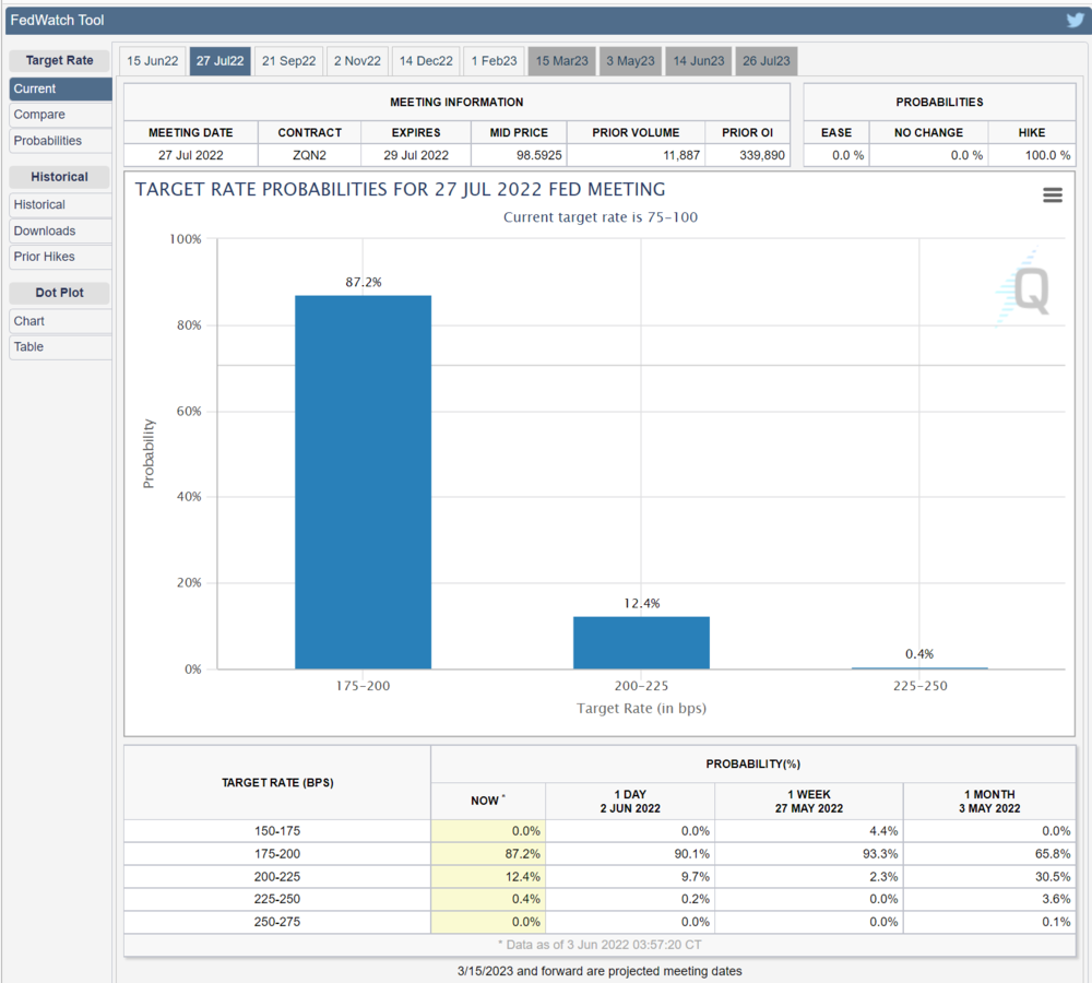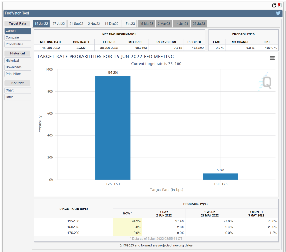 The CME’s FedWatch Tool is currently forecasting that there is a 94.2% probability that the Federal Reserve will move forward with another half a percent rate hike in June and an 87.2% probability that the Fed will raise rates another half a percent during the July FOMC meeting. The net result if these forecasts come to fruition is that the Federal Reserve will have raised its internal Fed funds rate from near zero to 2% in four months.