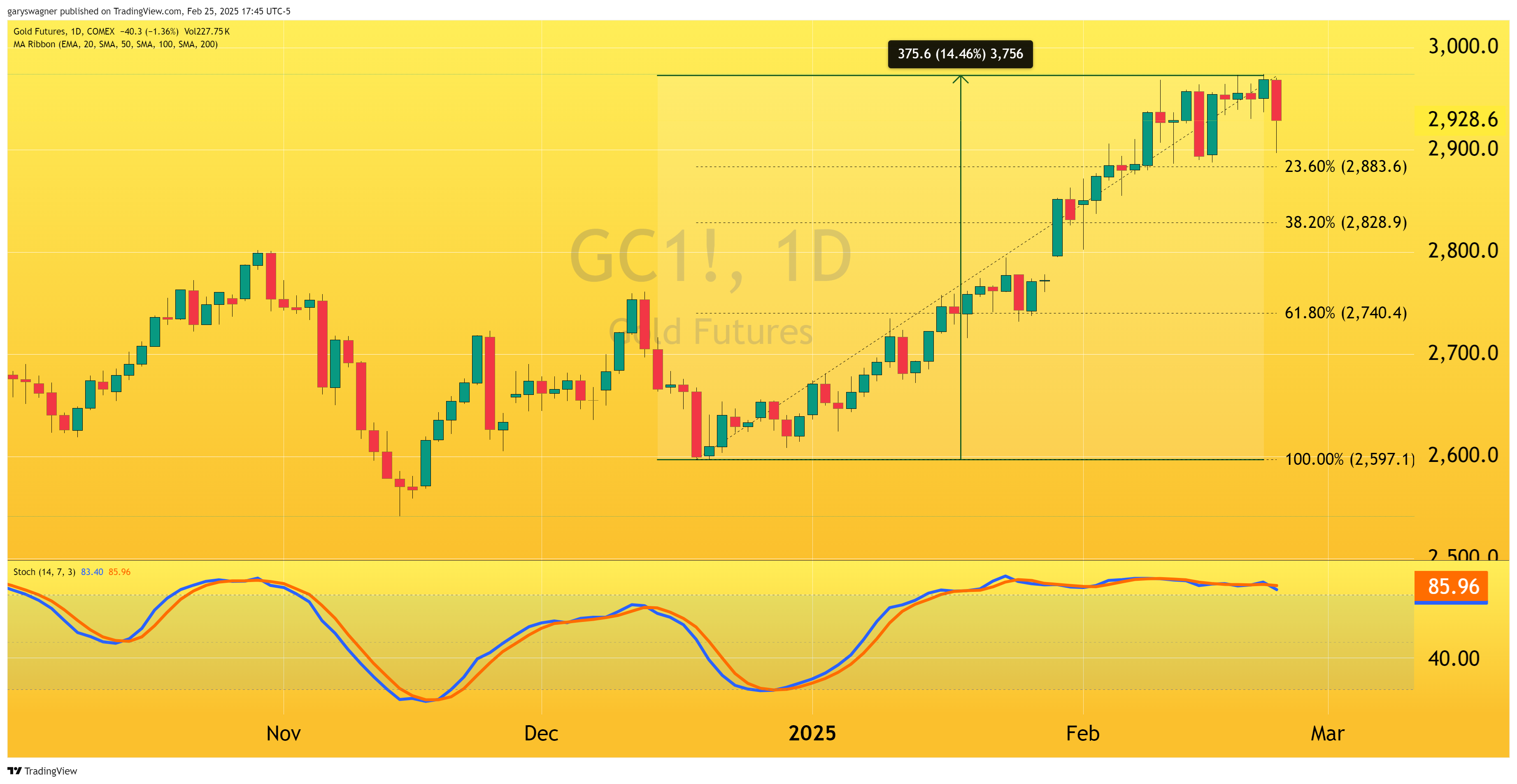 Gold prices have experienced a remarkable upward trajectory since mid-December, culminating in a record high before showing signs of a pullback. The precious metal surged from $2,599.60 on December 18 to an all-time high of $2,974 yesterday, representing a 14.46% gain ($375) in just over two months.