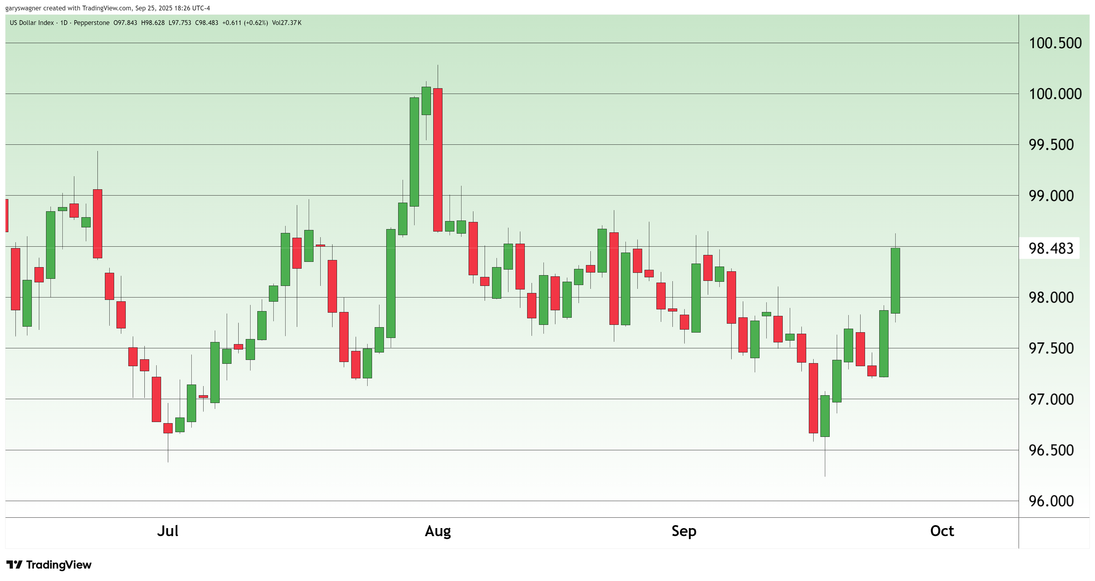 This reinforced the recent uptick in U.S. dollar strength which gained 0.62% in trading yesterday and matched those gains today. This puts the dollar index well above 98 at 98.483. If the dollar holds near current pricing it will represent the highest closing price this month. This represents a dramatic shift in the dollar as it had just hit its lowest trading point this month a little over a week ago when it traded to a low of 96.21 last Wednesday.