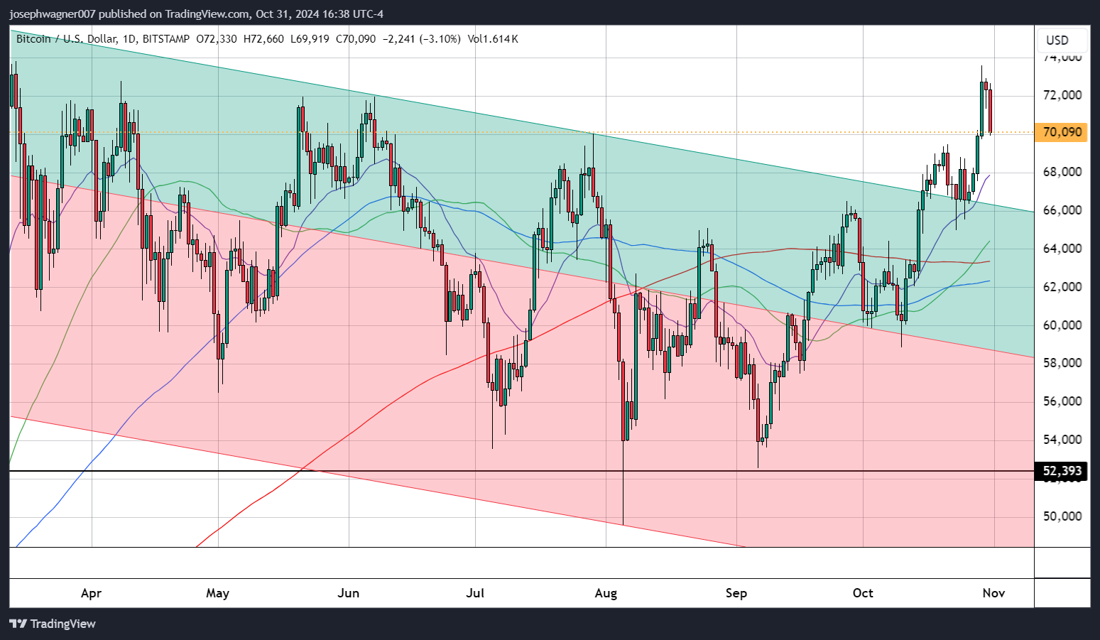 Despite Bitcoin's recent failure to set a new record, traders shouldn't lose confidence – fresh highs could materialize in the very near term, possibly as early as next week. The primary catalyst driving Bitcoin's recent price action has been the approaching U.S. presidential election, scheduled for Tuesday, November 5th.