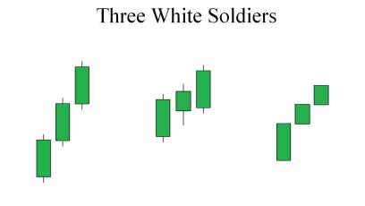 Today we got a weak example of a three-day candlestick pattern known as “three white soldiers” appearing in the daily candlestick chart for Bitcoin. I say weak because while it does meet most of the criteria which is;