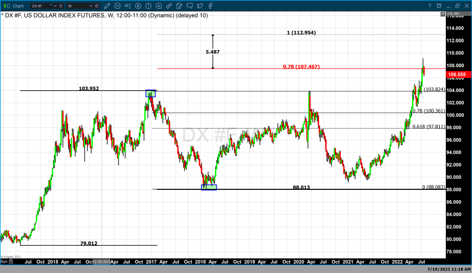Over the last three trading days, market participants have been active sellers of the dollar taking the dollar index substantially lower. On Thursday, July 14 the dollar hit its highest value during this rally taking the index to an intraday high of 109.12. The dollar index has lost approximately 2.6% in value in the last four trading days when compared to the intraday high on Thursday to today’s low of 106.57.