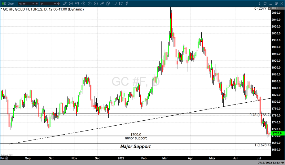On Thursday and Friday of last week, gold prices slipped briefly below $1700. Today gold traded to a low of $1704.40. However, it closed well above its high today of $1722.