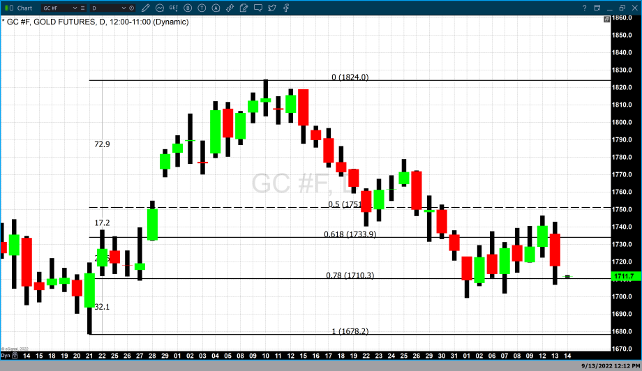 Gold futures also had a sharp selloff with the most active December contract as of 5:45 PM EDT down $28.40 or 1.63% and fixed at $1712.20. It is noteworthy that the low today in gold futures occurred just above $1700 at $1706.70 which indicates short-term technical support at that key psychological level.