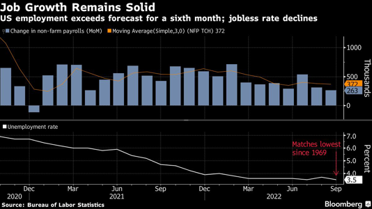Today’s jobs report for September showed a decrease in monthly gains, with 263,000 new jobs added last month, a decline from the prior month in which 315,000 new jobs were added.