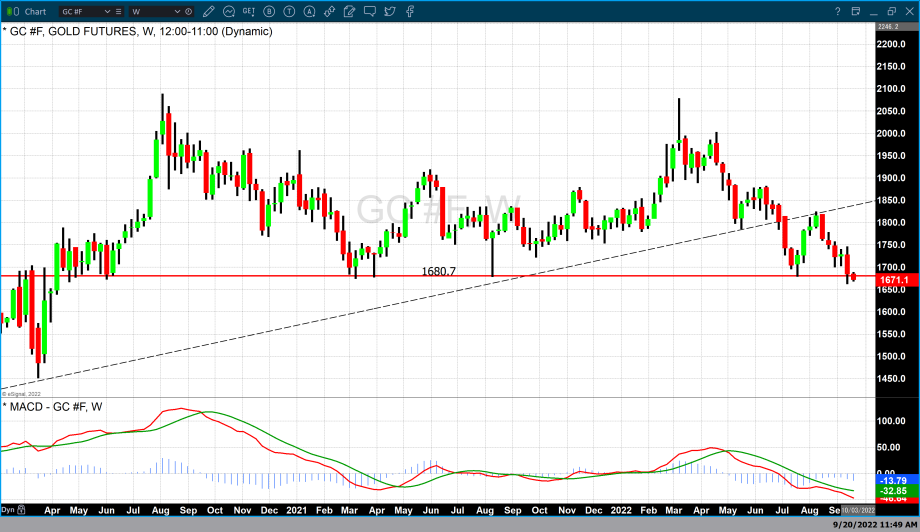 However, if the Fed raises rates by 75 basis points as expected market participants could see some short-covering activity amid a relief rally. As of 5:05 PM EDT gold futures basis, the most active December contract is trading five dollars lower and is fixed at $1673.20.