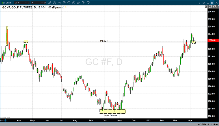 Gold Futures were closed for trading in observance of Good Friday causing a delayed reaction to the jobs report released last week. Gold opened lower in Australia and traded to a low in New York of $1996.50. As of 5:20 PM EST, the most active June 2023 contract is currently trading at $19.80 or 0.98% lower and fixed at $2006.60. This was partially due to dollar strength which gained 0.50% taking the dollar index to 102.235.