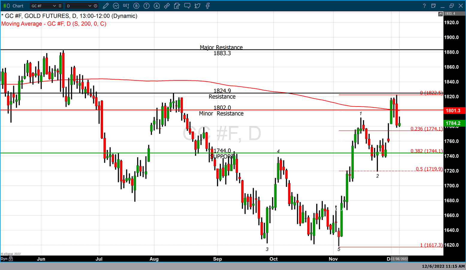 Important technical levels in gold futures