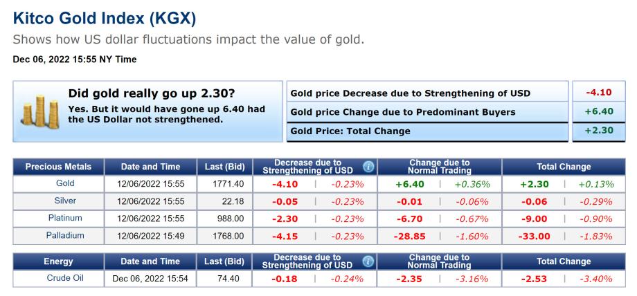 This can also be seen in the pricing of physical gold today. According to the Kitco Gold Index spot gold is currently fixed at $1771.40. Traders bid physical gold higher by $6.40 and dollar strength took away $4.10 of that gain which resulted in today’s net gain of $2.30.