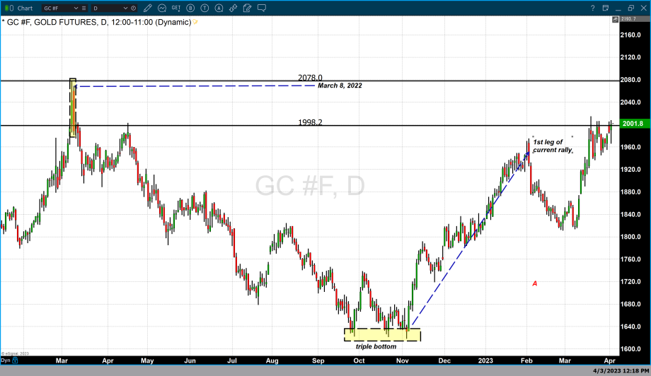 It has been just a little over one year ago that gold futures traded and closed above $2000 per ounce. On March 8, 2022 gold futures opened above $2000 per ounce, traded to a high of $2078 and closed at approximately $2043. Even though gold futures were able to close well above $2000, that price point was unsustainable. On the following day, March 9, 2022, gold opened at approximately $2060 and strong selling pressure drove prices back below $2000 closing at $1988.