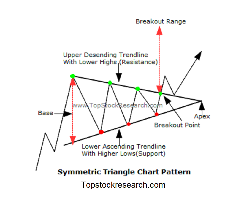 This pattern is composed of a lower ascending trendline which acts as support, and an upper descending trendline which forms the current level of resistance. Prices in this pattern will oscillate between the upper-level resistance trendline and the lower-level support trendline. During a bullish market scenario, you look for pricing to break above resistance, this typically occurs after multiple attempts to breach either the low or the high occurs with a breakout to the upside.