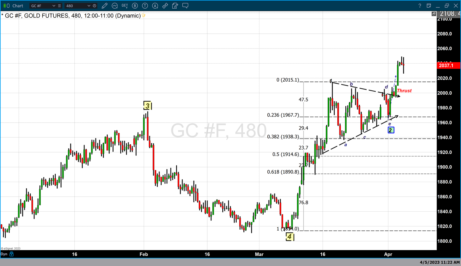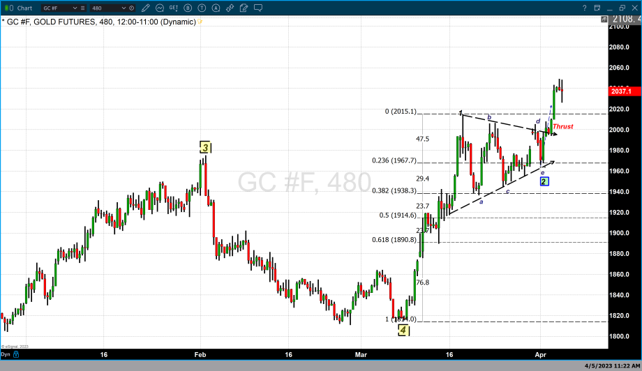 The solid breakout that moved gold futures above $2000 to a high of $2043 yesterday, and $2049.20 today indicates a new level of support well above $2000 per ounce.