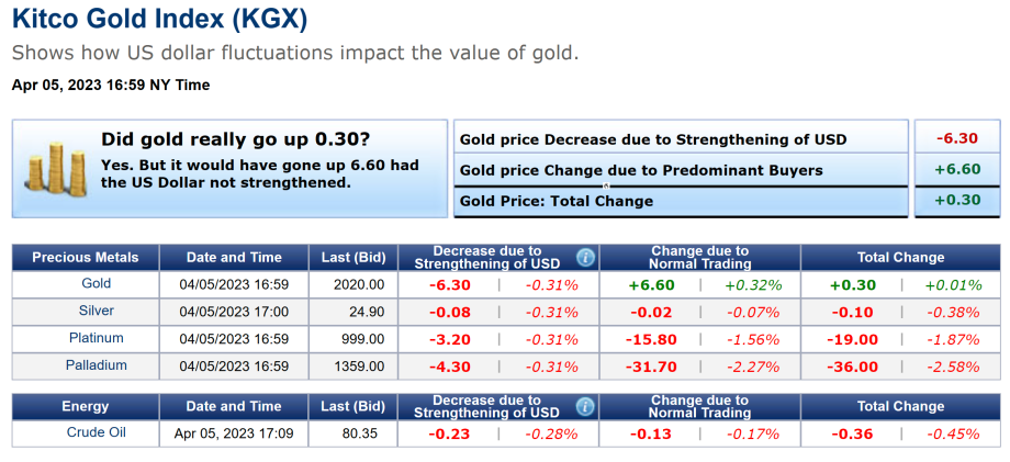 The same cannot be said for spot gold which is currently fixed at $2020 which is a net gain of $0.30. According to the Kitco Gold Index (KGX), today’s spot prices are a combination of investors bidding spot gold higher by $6.60 coupled with dollar strength taking gold lower by $6.30, thereby creating a fractional gain of $0.30. The dollar is currently up 0.30% and the index is fixed at 101.57.