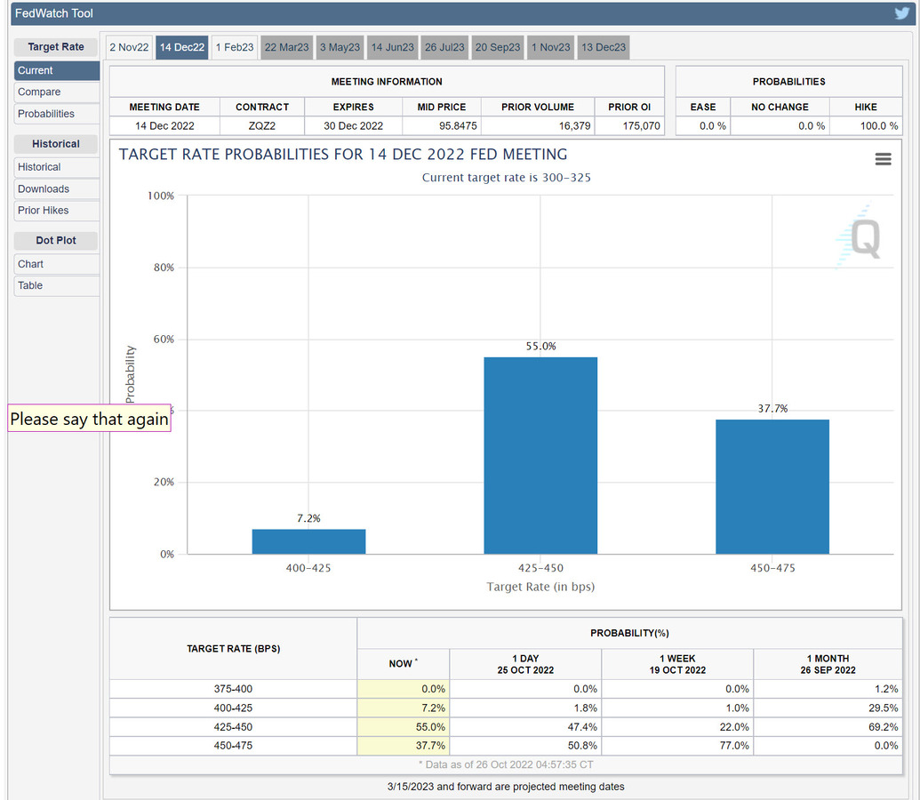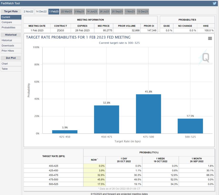 This clearly shows that market participants continue to have their primary focus on the pace and magnitude at which the Federal Reserve continues to raise interest rates. It is widely accepted that the Federal Reserve will raise rates by 75 basis points in November and for the most part, has already been factored into current market pricing. It is also widely believed that the Federal Reserve will continue to raise rates at the December FOMC meeting.
