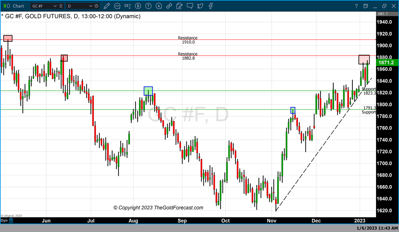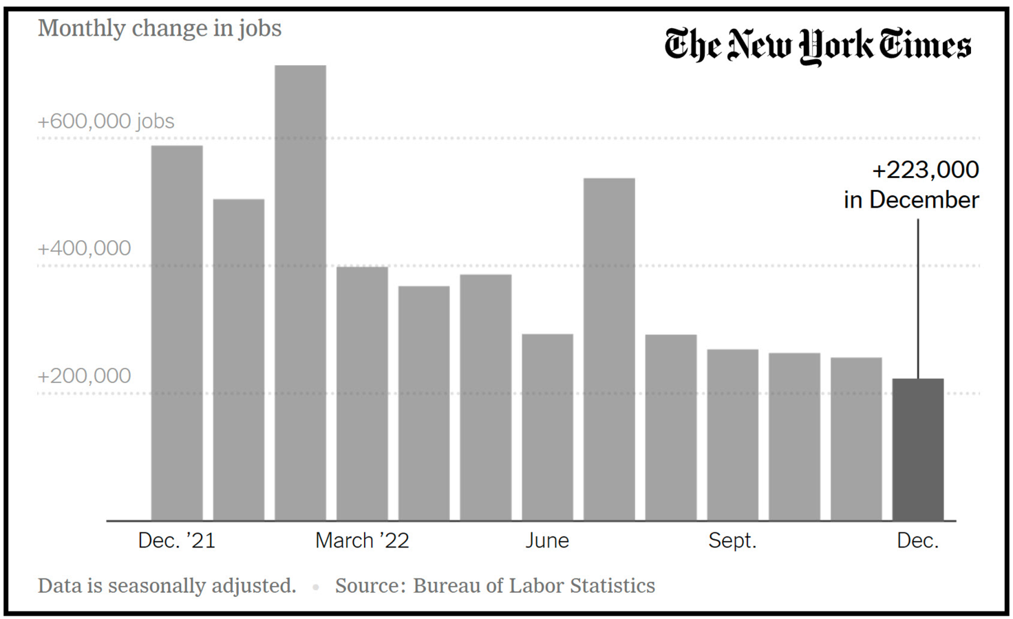 Yesterday’s strong price decline in gold could easily be a “one and done” price dip based on today’s strong gains following the release of the jobs report for December. The report revealed that the labor market finished 2022 on a strong note with December adding 223,000 new jobs. This was well above estimates which anticipated an additional 200,000 jobs were added last month.