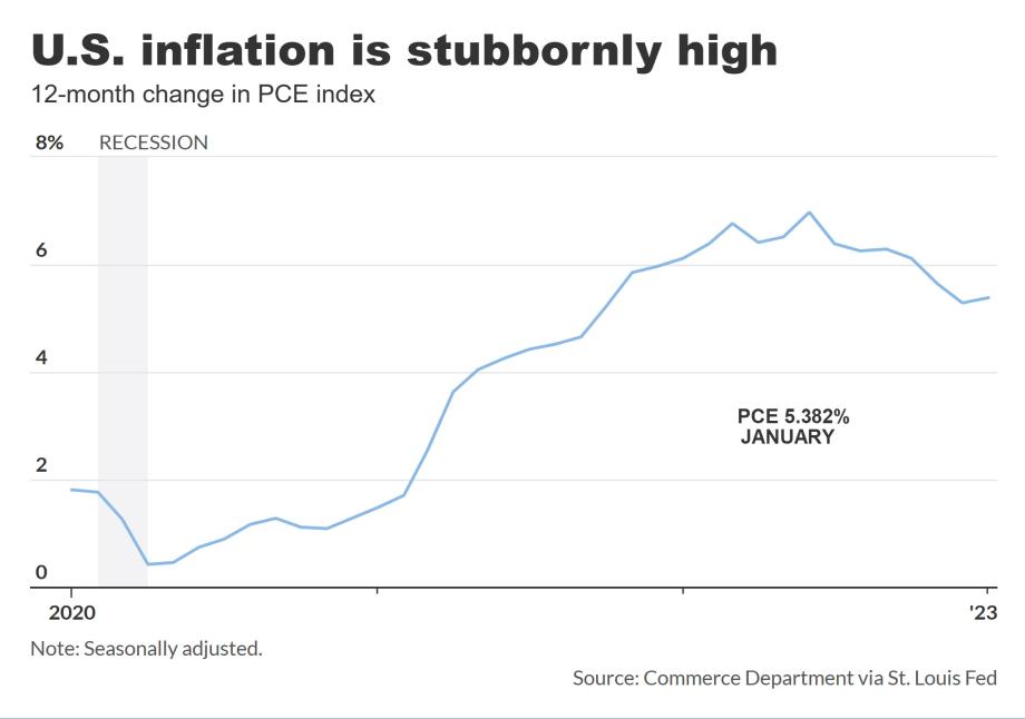 PCE inflation index jumps to 5.382% YOY or 0.6% in January