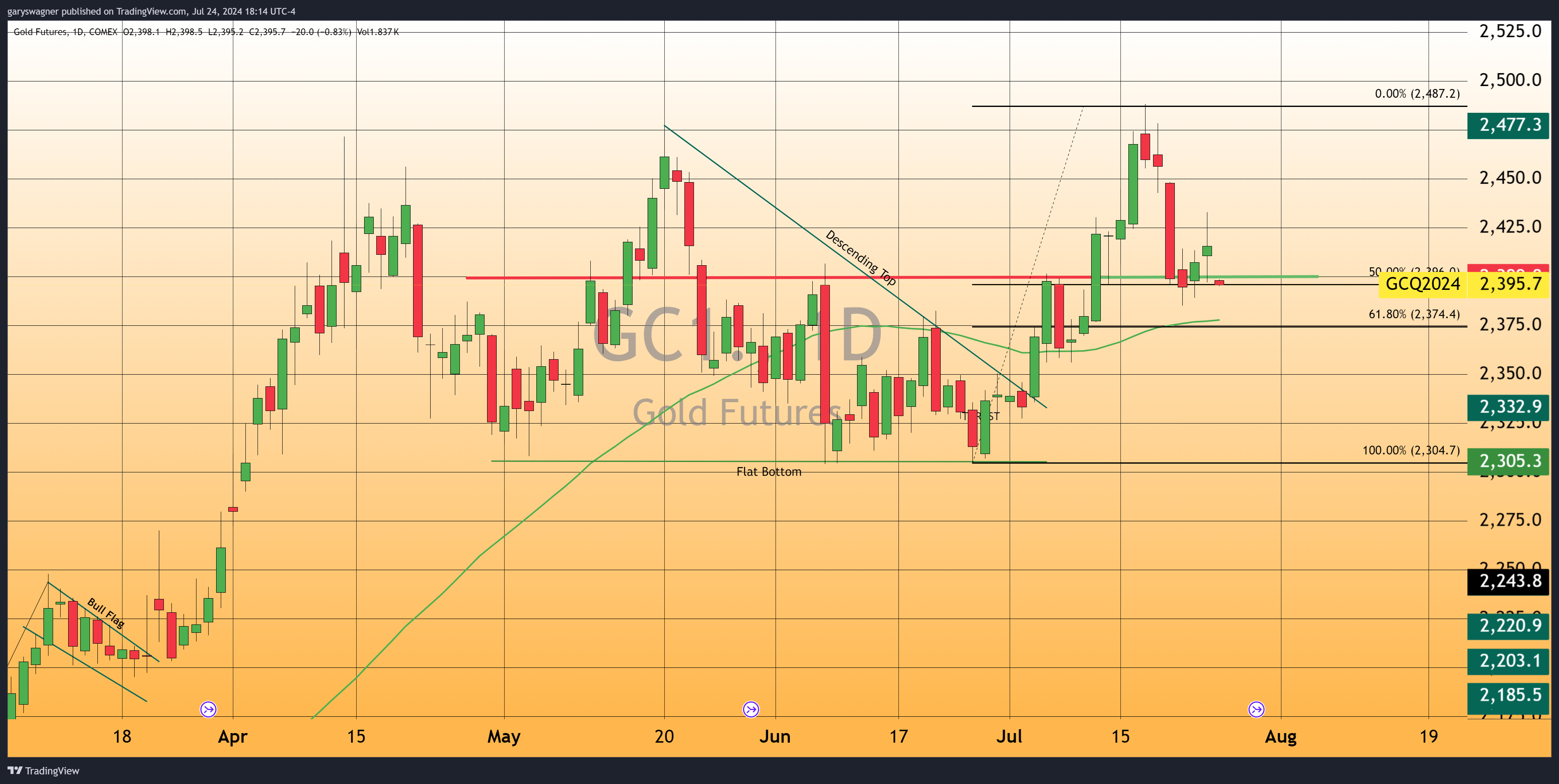The anticipation of these reports and their potential impact on Fed decisions has already influenced financial markets. Gold futures, often seen as a hedge against economic uncertainty, have shown volatility. The most active August contract opened at $2,410.70, and reached a high of $2,433, before settling near the day's low at $2,397.