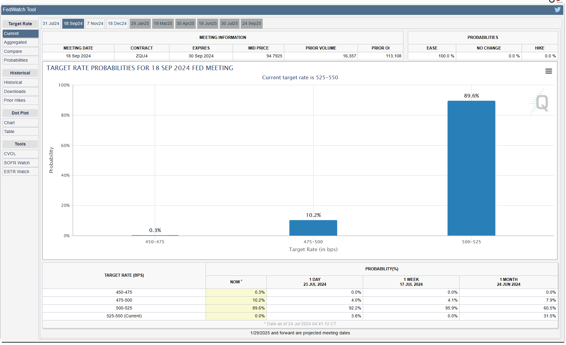 Investors are pricing in multiple scenarios for potential rate cuts in September. The CME's FedWatch tool indicates an 89.6% probability of a 0.25% rate cut, a 10.2% chance of a 0.50% cut, and a newly added 0.3% possibility of a 0.75% cut. This last scenario would bring the Fed funds rate down to between 4.50% and 4.75%, signaling a significant shift in monetary policy.