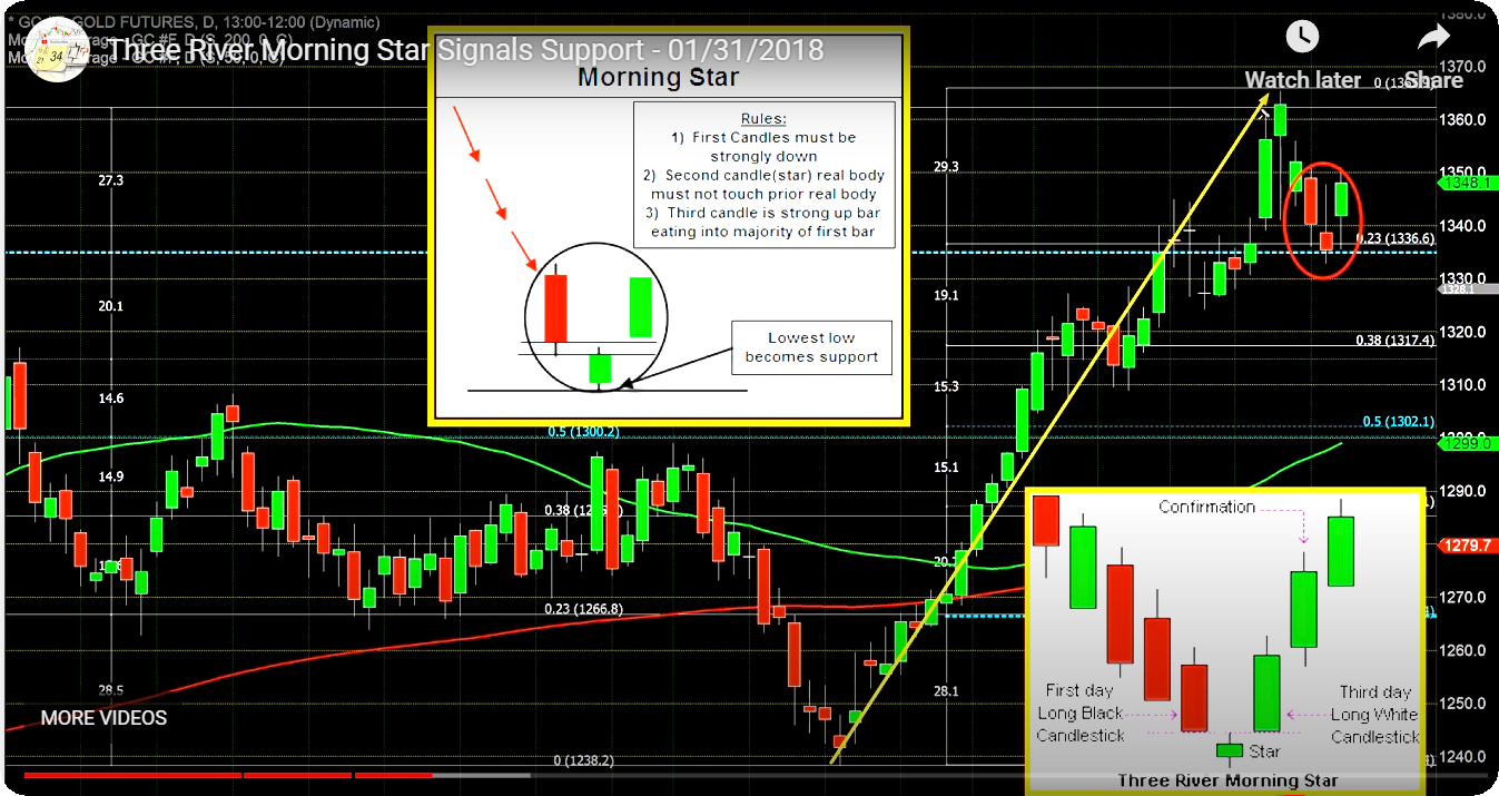 Gold futures shine bright with a strong gain, forming a "3 river morning star"