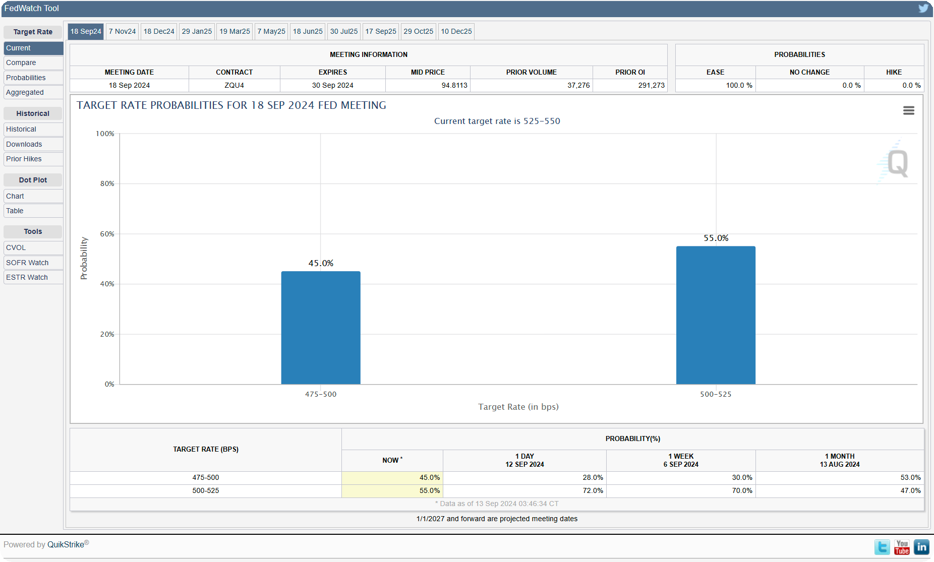 The CME's FedWatch tool reflects growing market expectations of a more substantial rate cut. The probability of a 50-basis point reduction next week has surged from 28% to 45% in just one day, with a 55% likelihood of a 25-basis point cut.