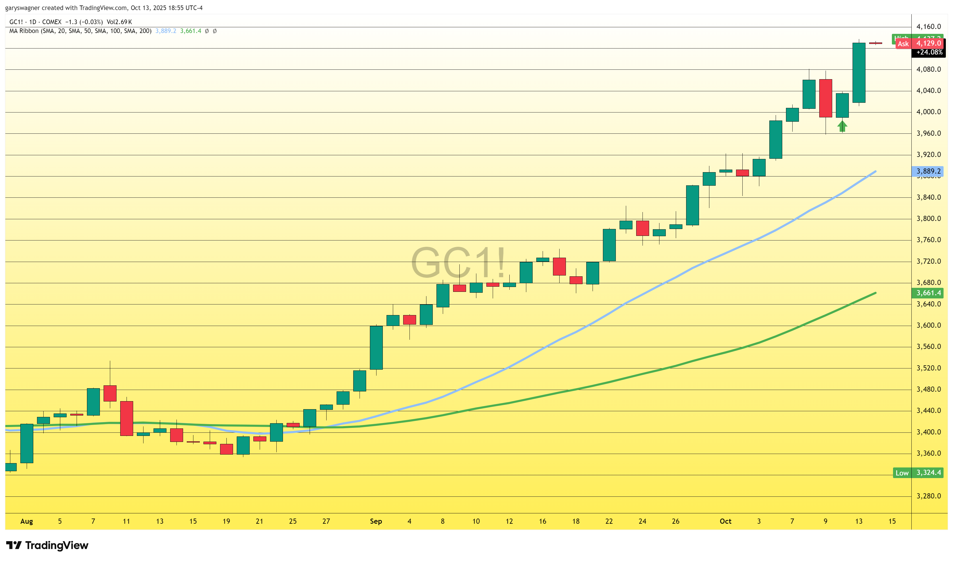 Gold futures closed higher by $94.50 (2.34%) at $4,130. This was gold’s largest single day move since after “Liberation Day” on April 9th when gold gained $101.50. However, it followed the Liberation Day sell off losing $208 in the three days following.