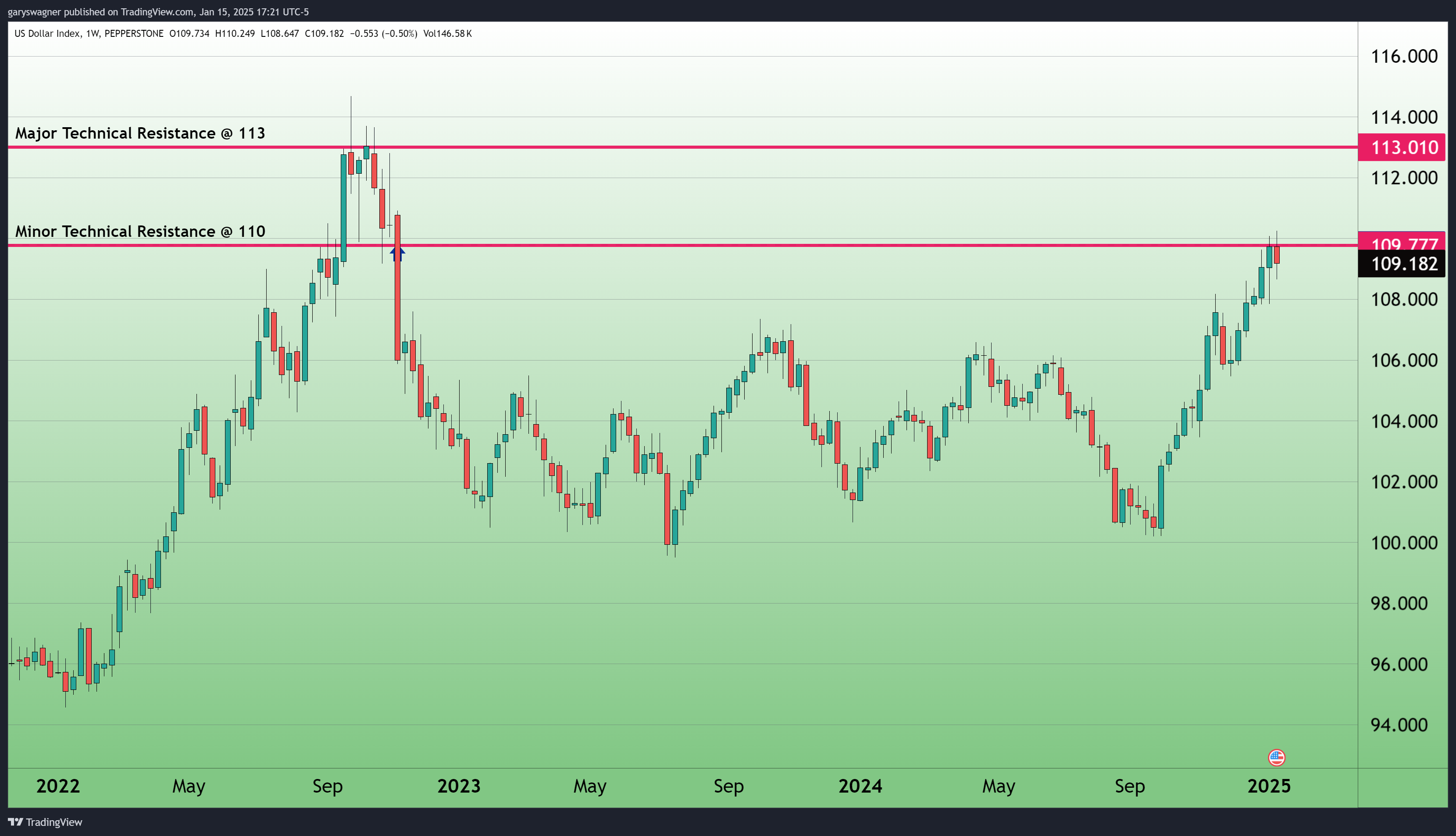 Market reaction was pronounced, with gold's gains the result of both dollar weakness, and persistent inflation. The dollar index fell 0.51% to 109.182, accounting for roughly half of gold's upward move. The remainder of gold's advance reflected direct buying interest in the precious metal. As of 5:00 PM EST gold futures based the most active February contract is fixed at $2722.60, after factoring in today’s gain of $29.50, a 1.10% increase.