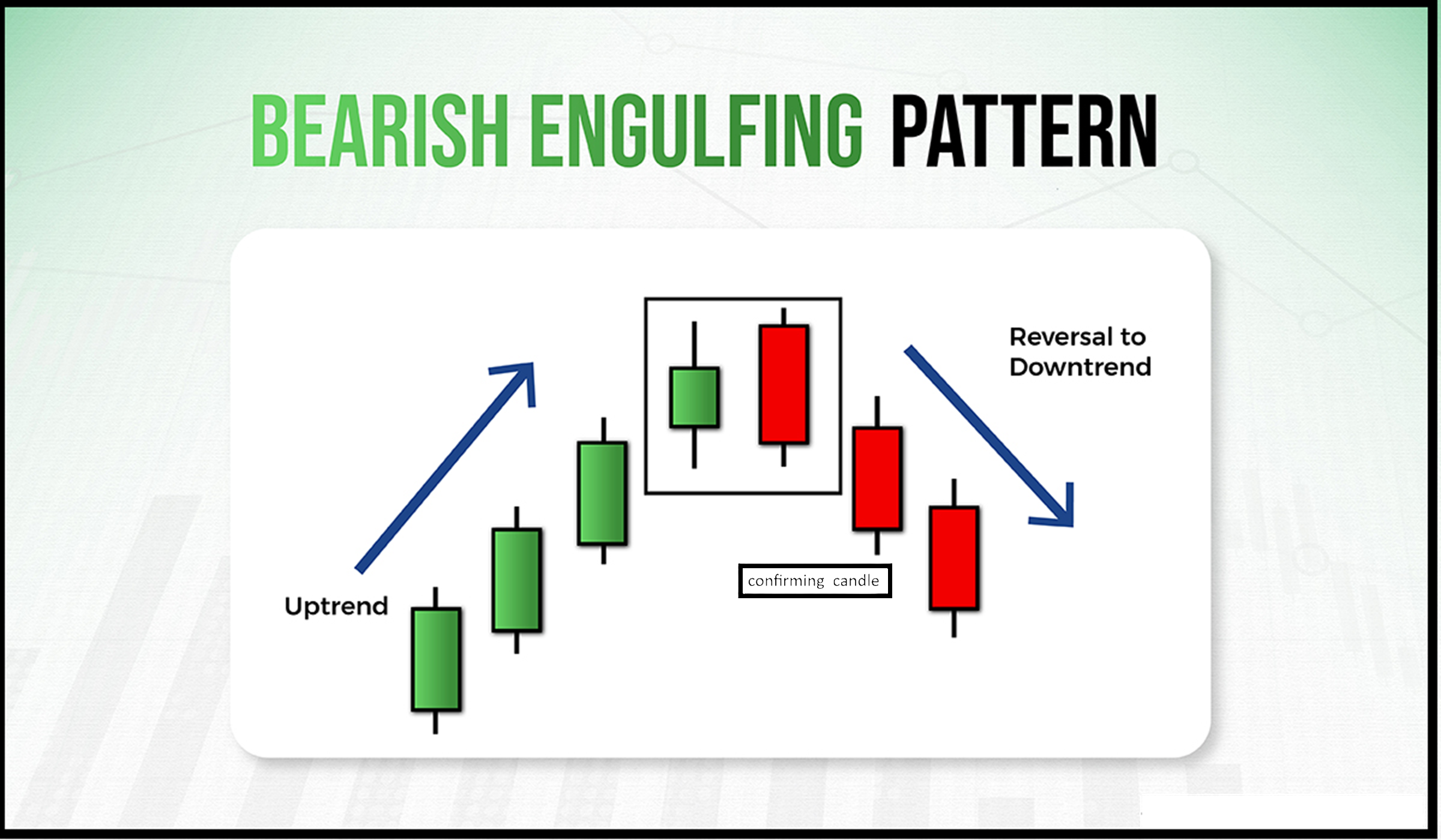 The Bearish Engulfing Pattern is a technical chart pattern that can indicate a potential reversal after a strong uptrend. It consists of two consecutive candlesticks - a large green candle followed by a higher-opening red candle that closes below the previous green candle's open, essentially "engulfing" the prior bullish candle.