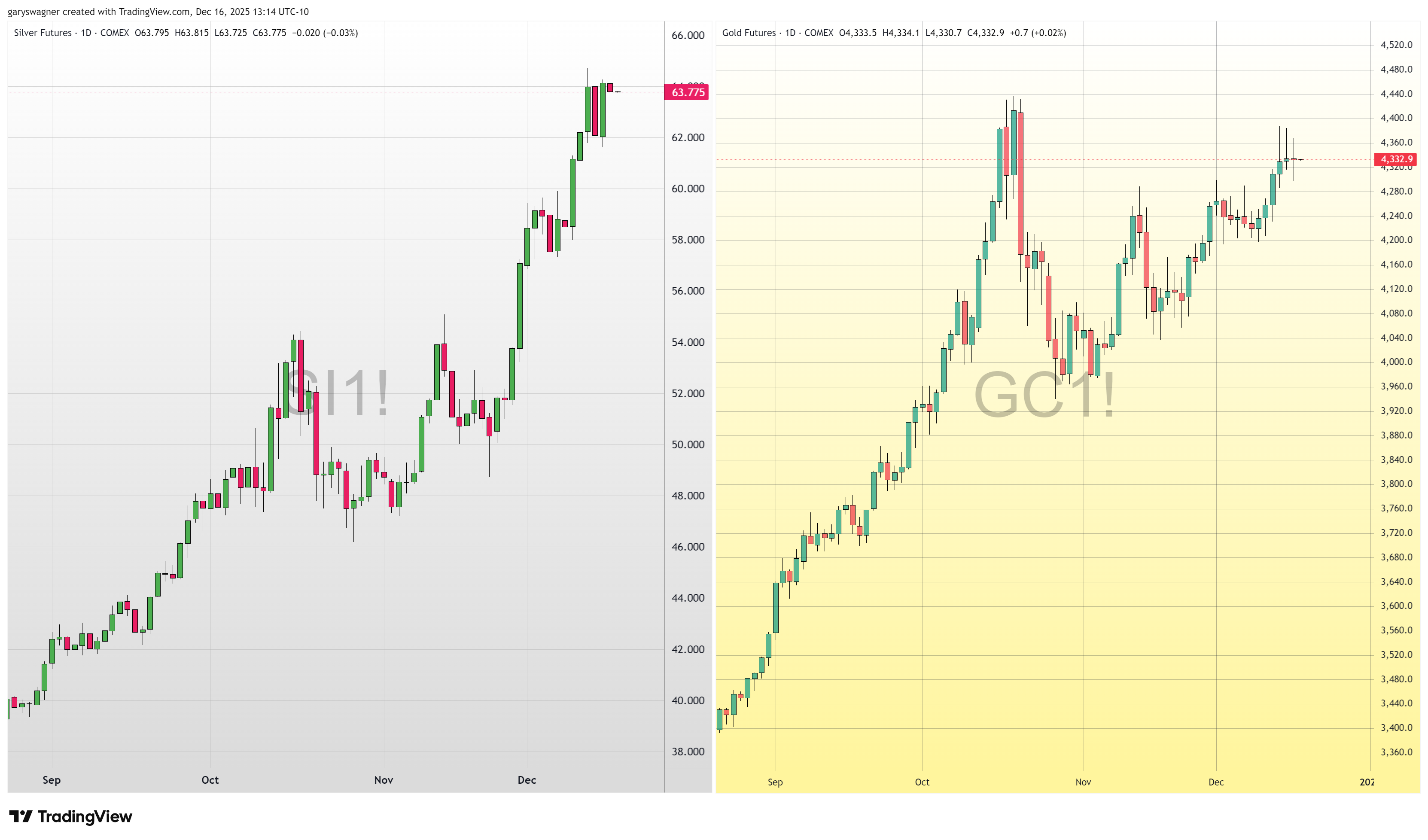 Despite Monday's modest pullback, silver remains near historically elevated levels after a remarkable rally from around $40 per ounce in August to a recent peak near $66. The metal's consolidation just below all-time highs suggest traders are evaluating whether industrial demand and monetary concerns can sustain prices at these levels.